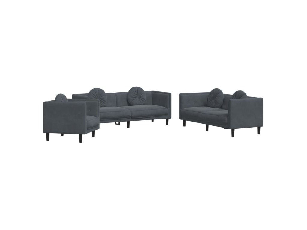 3dílná sedací souprava s polštáři tmavě šedá samet 3209248
