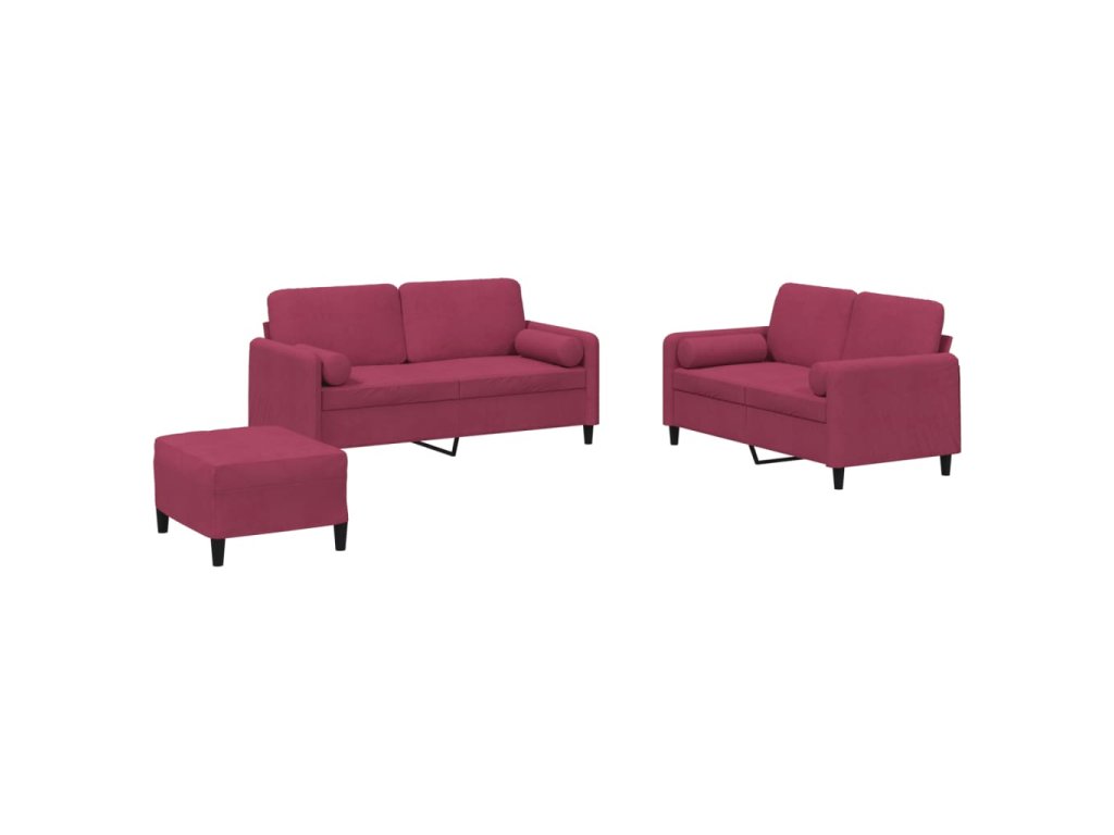 3dílná sedací souprava s polštáři vínová samet 3202008