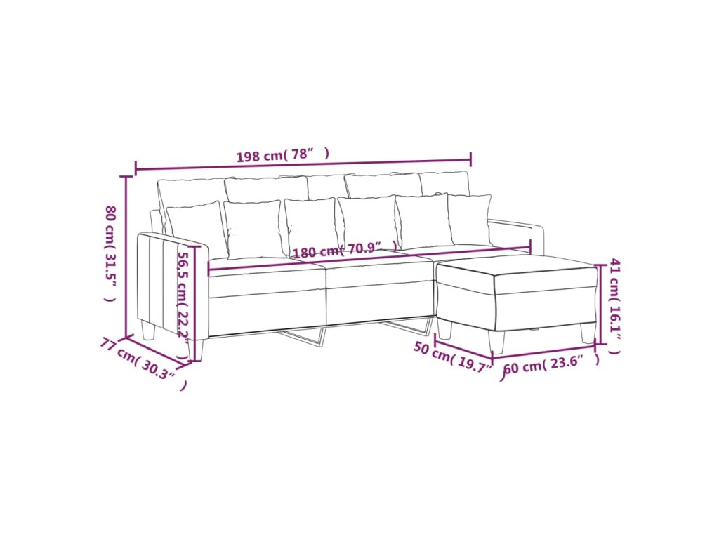 Tato 3místná pohovka s podnožkou je skvělým místem pro povídání, čtení, sledování televize nebo jen tak k odpočinku. Bude ústředním bodem vašeho interiéru.