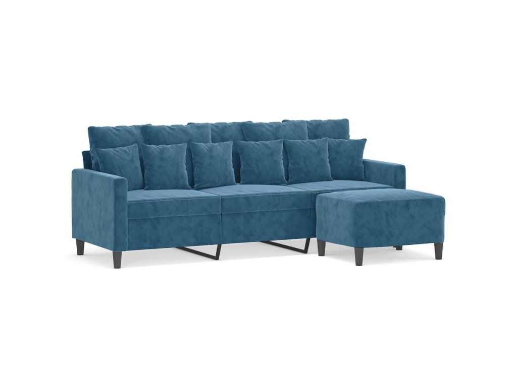 3místná pohovka s podnožkou modrá 180 cm samet 3201116