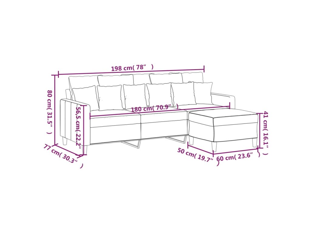 Tato 3místná pohovka s podnožkou je skvělým místem pro povídání, čtení, sledování televize nebo jen tak k odpočinku. Bude ústředním bodem vašeho interiéru.