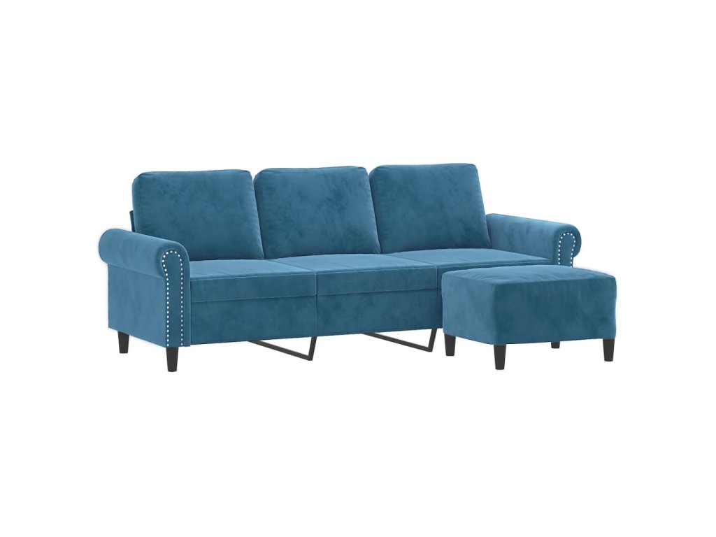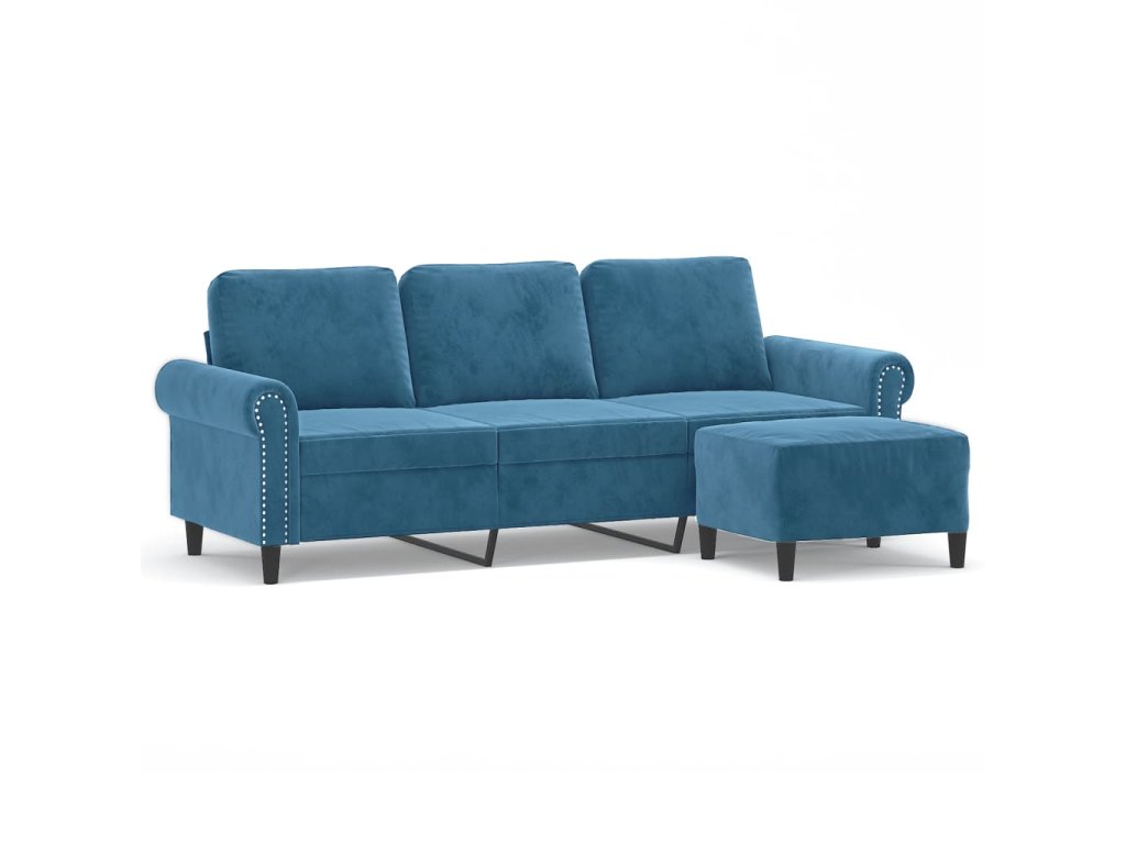 3místná pohovka s podnožkou modrá 180 cm samet 3201224