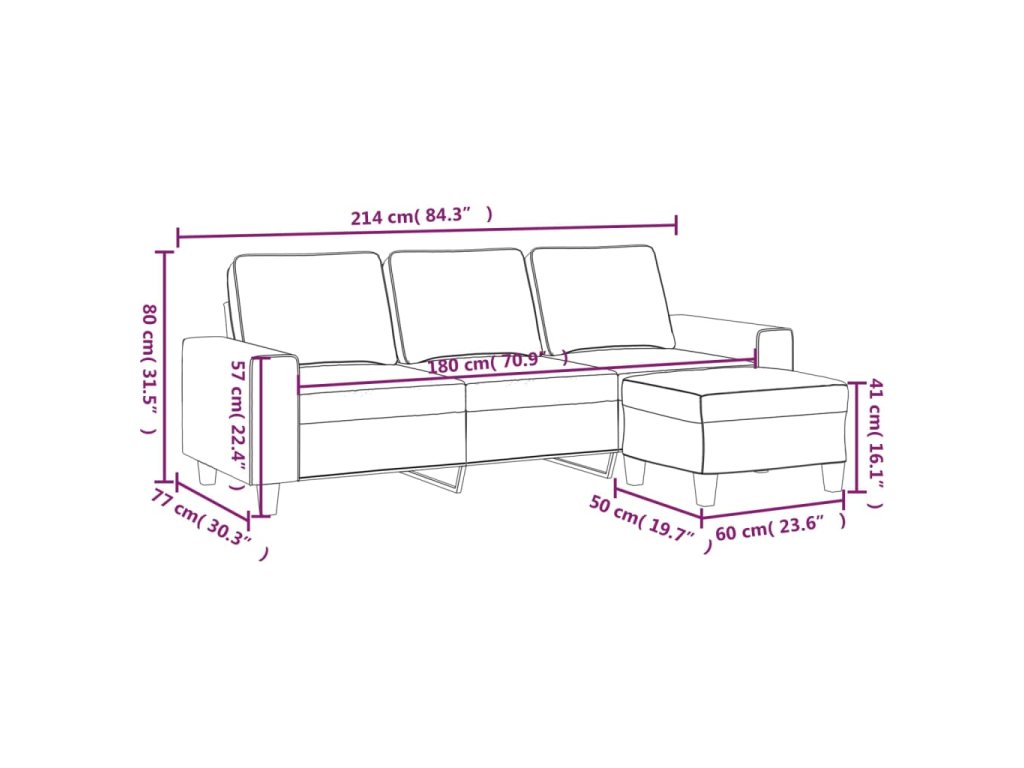 Tato 3místná pohovka s podnožkou je skvělým místem pro povídání, čtení, sledování televize nebo jen tak k odpočinku. Bude ústředním bodem vašeho interiéru.