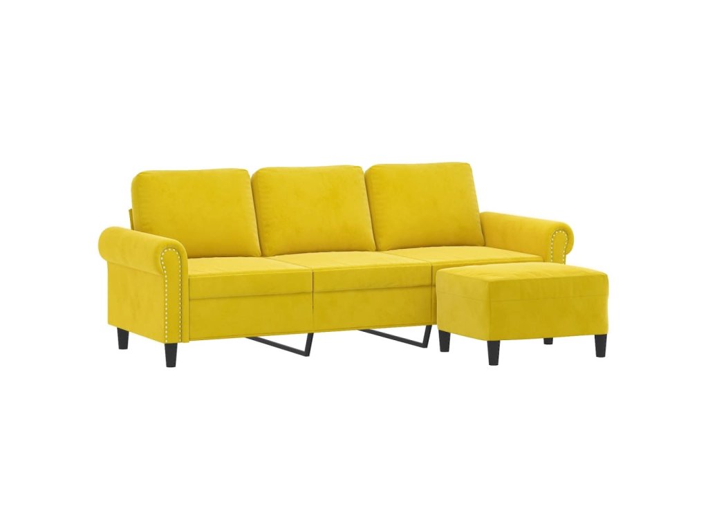 3místná pohovka s podnožkou žlutá 180 cm samet 3201221