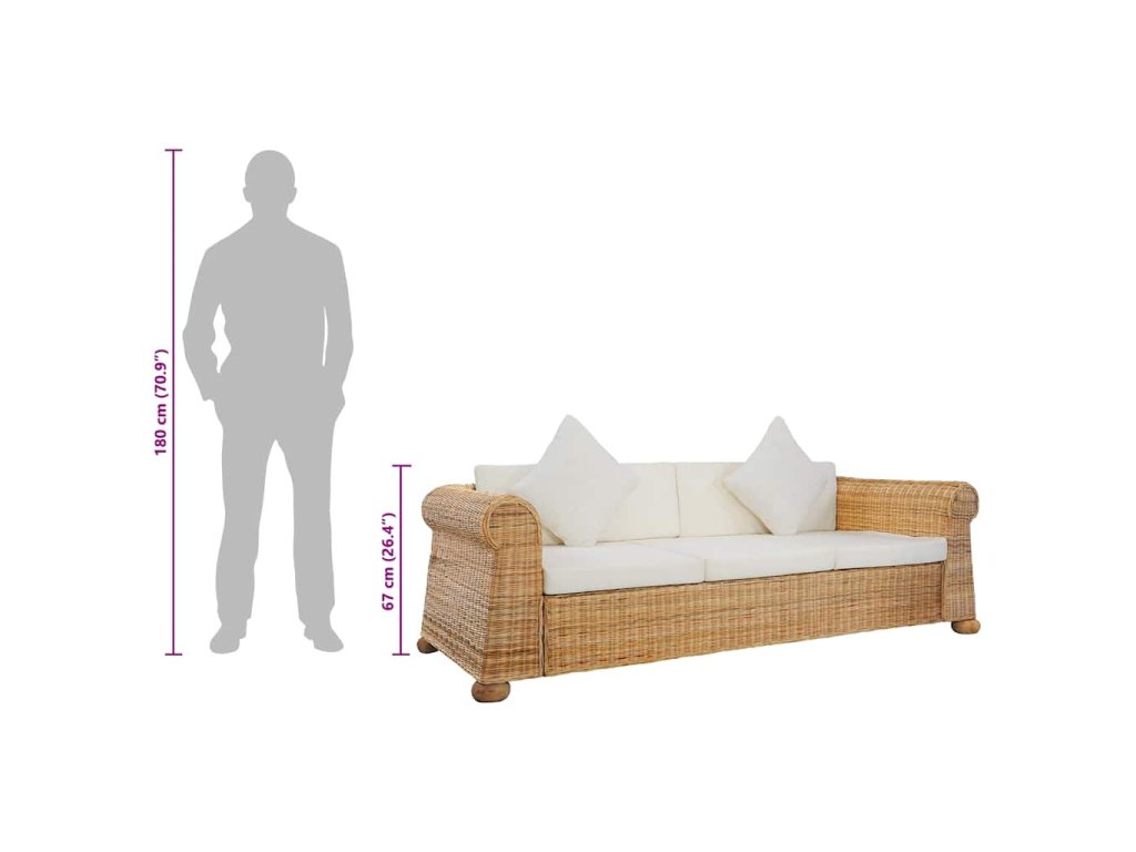Vzhledem k originálnímu ratanovému materiálu se pohovka snadno čistí, je mimořádně odolná a vhodná pro každodenní použití. Má robustní dřevěný rám, který je velmi odolný a stabilní. Silné podušky na sedák a opěradlo a polštáře jsou mimořádně pohodlné a mají snímatelné potahy, takže se dají snadno prát. Široké područky vám navíc zajistí pohodlí při sezení.
