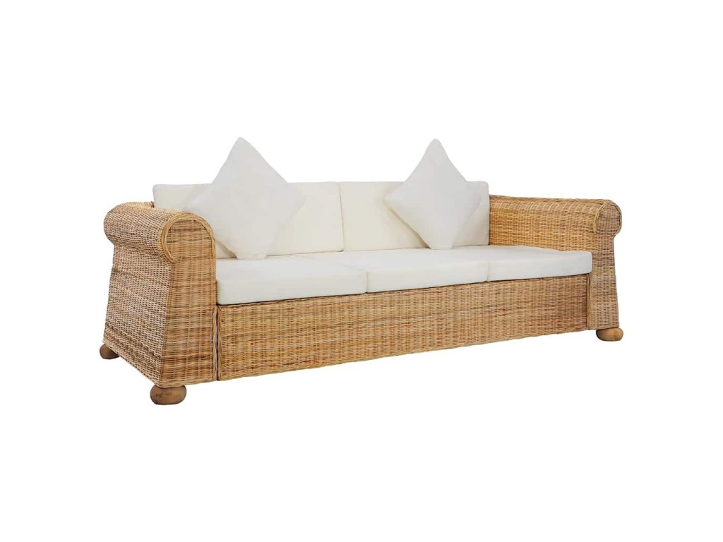 3místná pohovka s poduškami přírodní ratan 283074