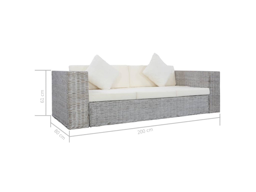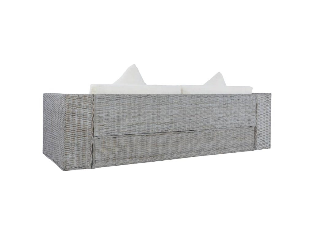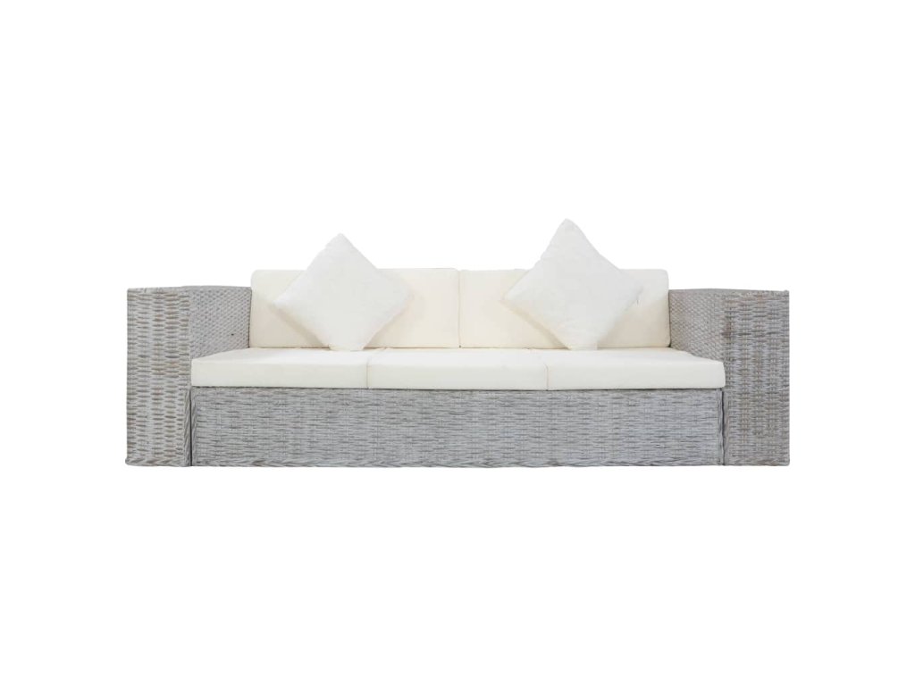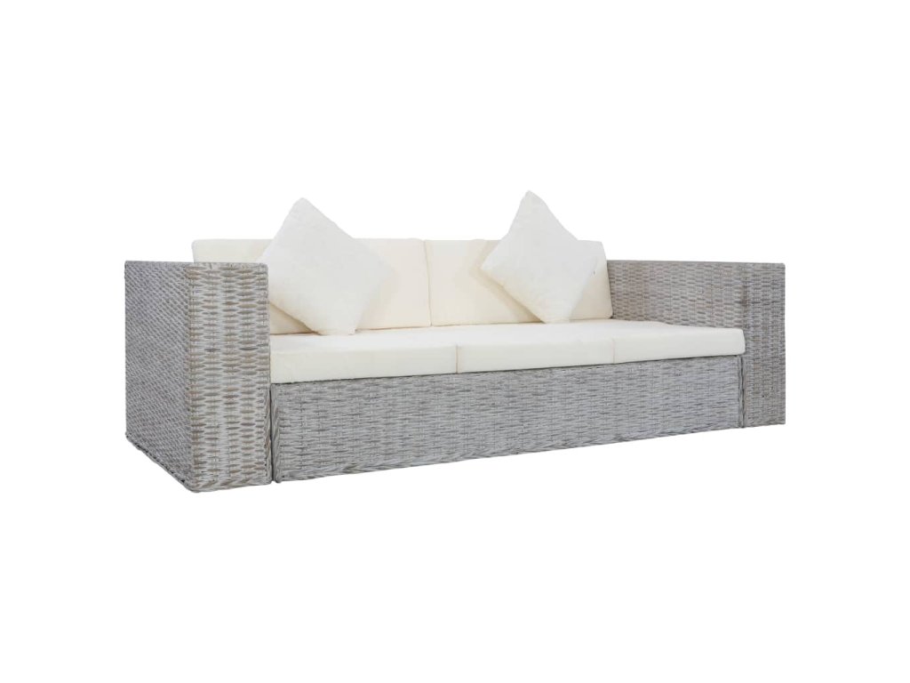 3místná pohovka s poduškami šedá přírodní ratan 283071
