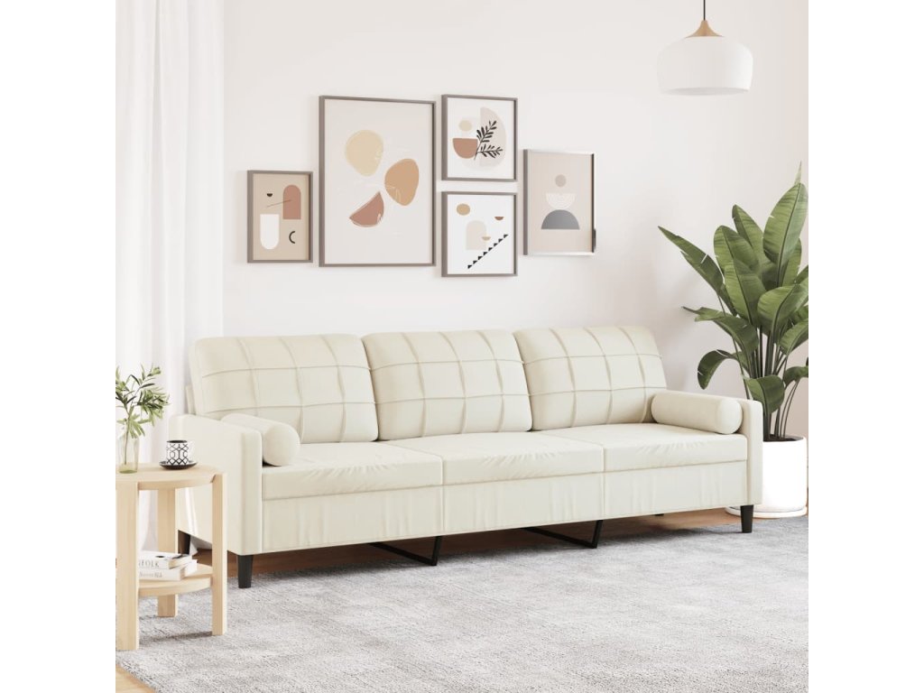 3místná pohovka s polštáři krémová 210 cm samet 3278247