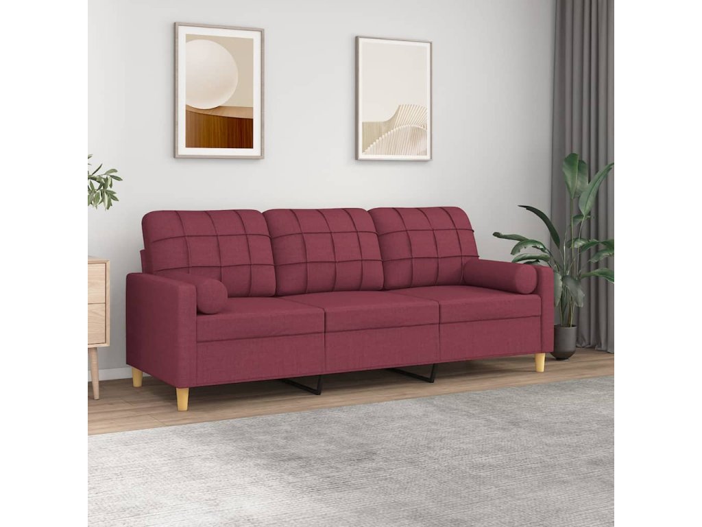 3místná pohovka s polštáři vínová 180 cm textil 3200796