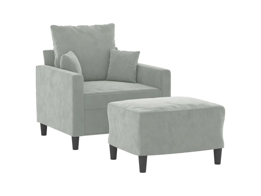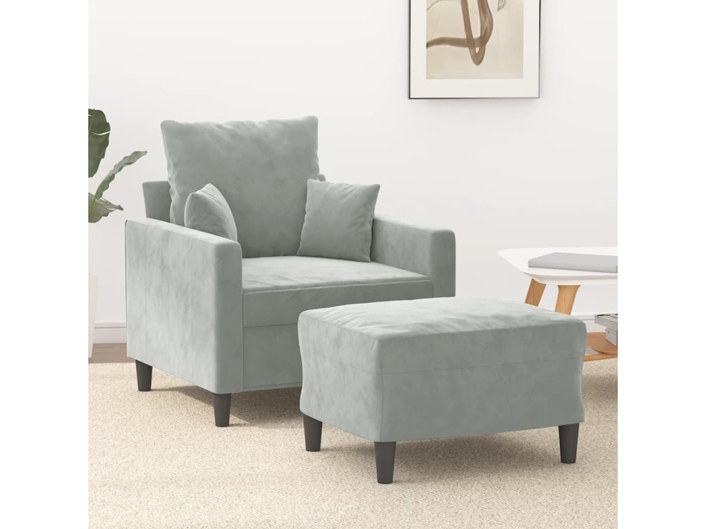 Křeslo s podnožkou světle šedé 60 cm samet 3201097