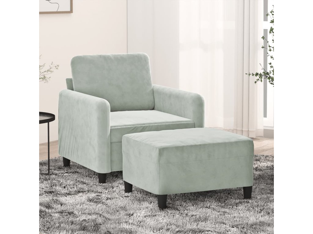 Křeslo s podnožkou světle šedé 60 cm samet 3201164