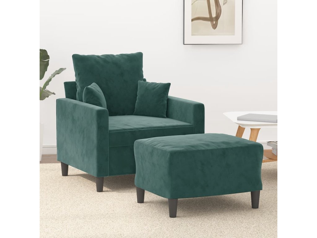 Křeslo s podnožkou tmavě zelené 60 cm samet 3201099