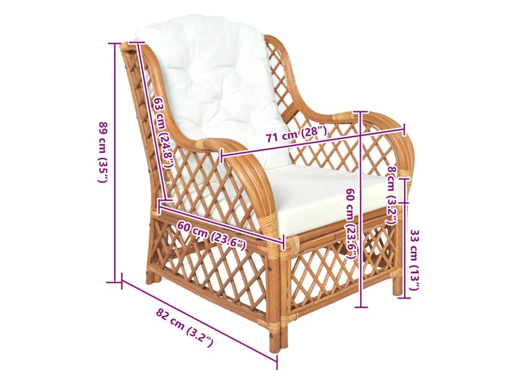 Tato sedačka je vyrobená z přírodního ratanu, je tedy odolná a snadno se čistí. Přiložené podušky poskytují maximální pohodlí, takže se můžete po náročném dni zcela uvolnit. Pohovka je ideální pro rodinné filmové večery, hraní videoher, čtení nebo sledování televize.