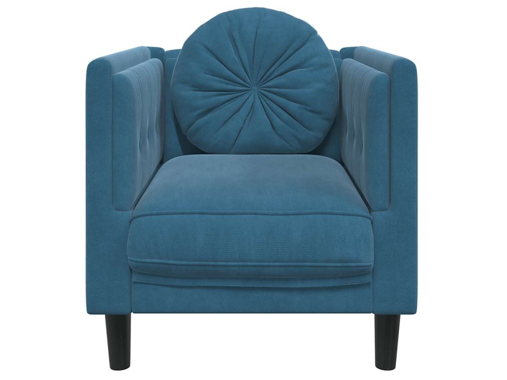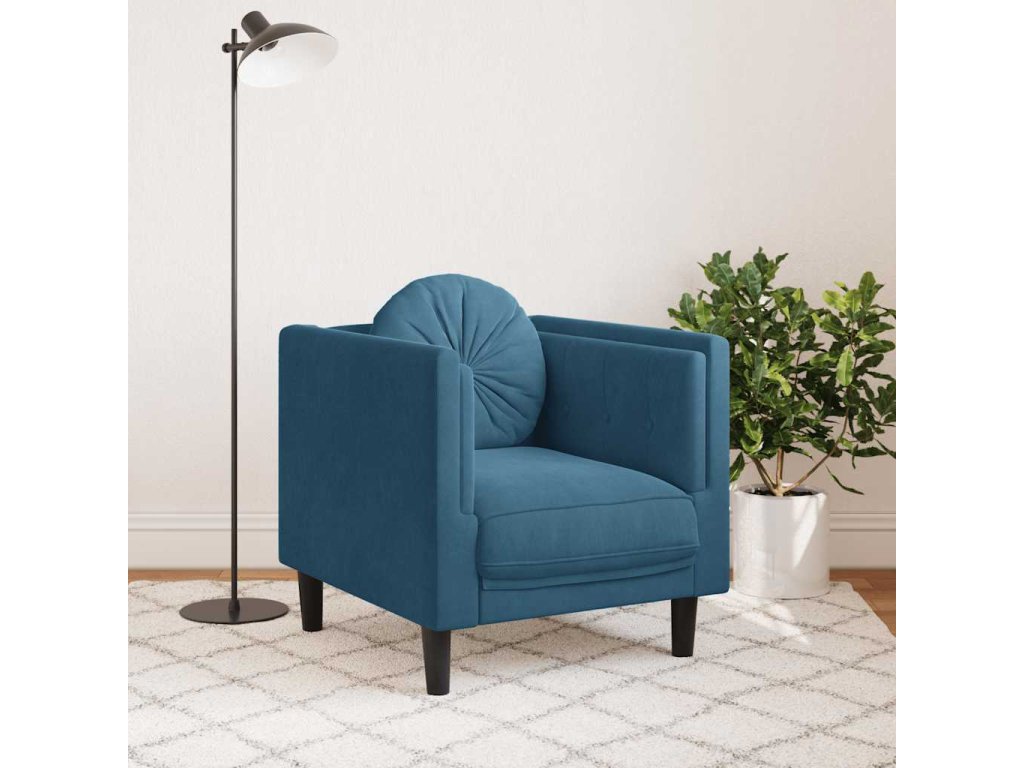 Křeslo s polštářem modré samet 372630