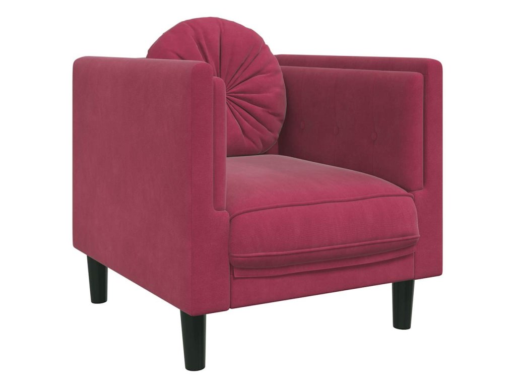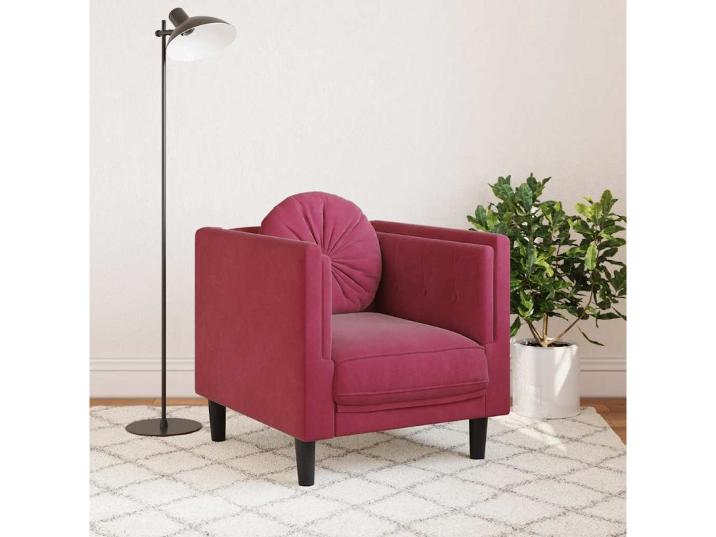 Křeslo s polštářem vínově červené samet 372626