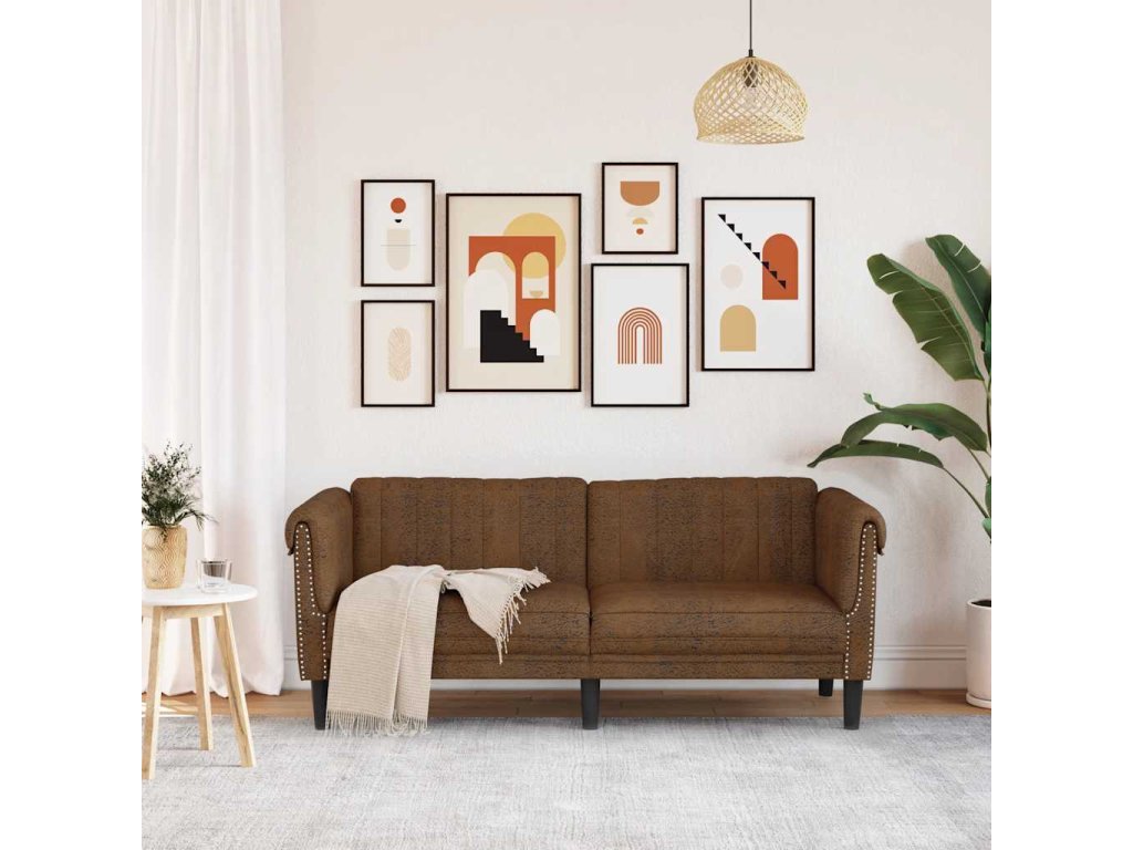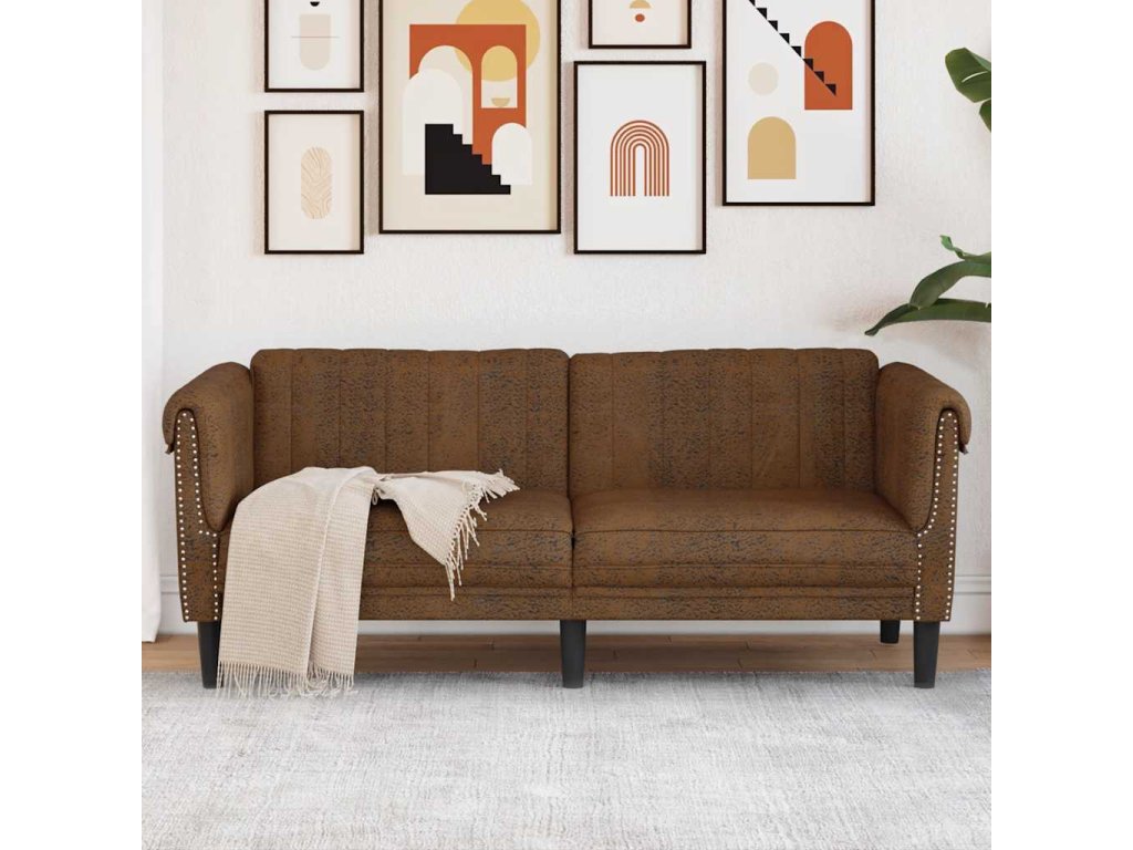 Pohovka 2místná hnědá umělá semišová kůže 372584