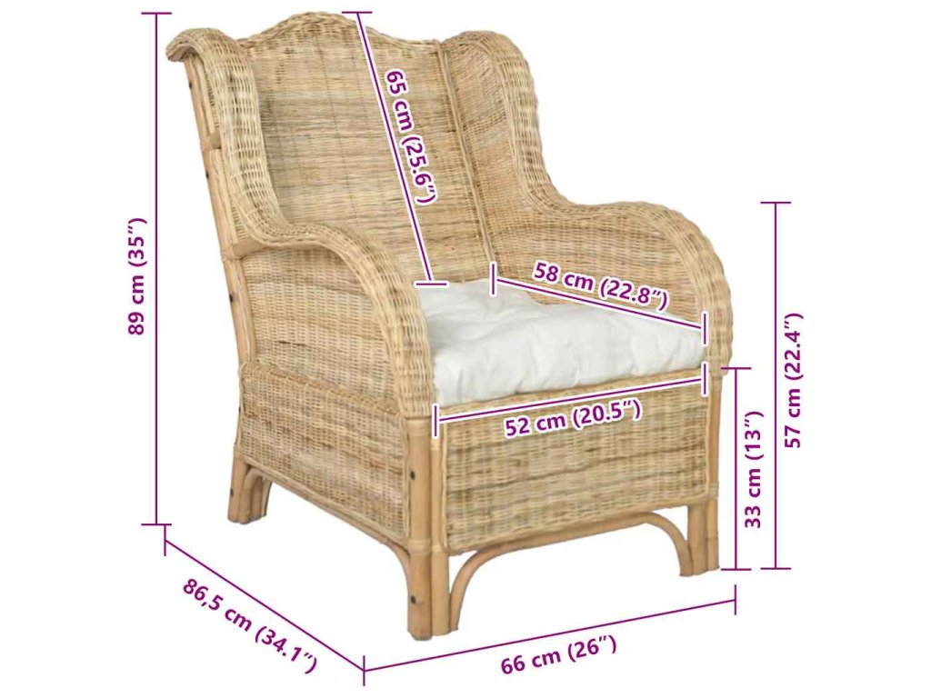 Židle je vyrobená z přírodního ratanu, takže jsou odolná a snadno se čistí. Přiložená poduška poskytuje maximální pohodlí a můžete se na ní skvěle uvolnit po náročném dni. Hodí se pro filmové večery v rodinném kruhu, hraní videoher, četbu nebo sledování televize.