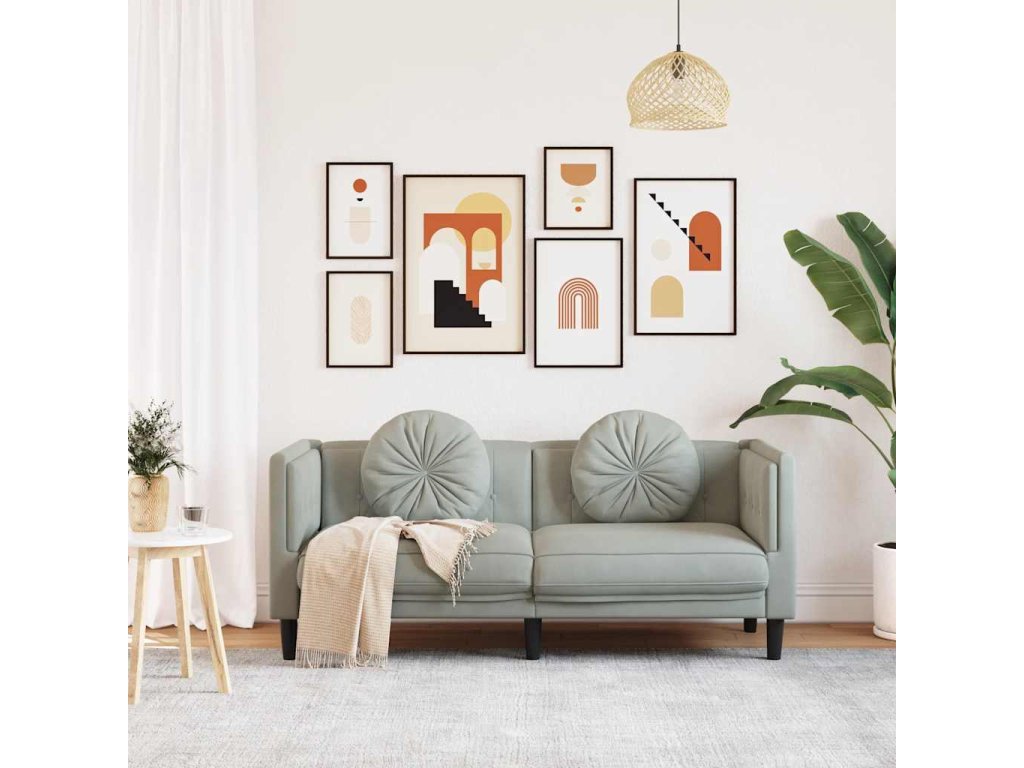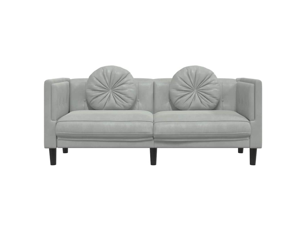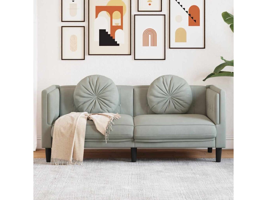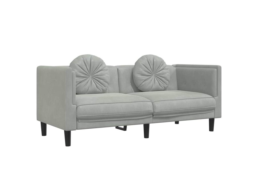 Pohovka s polštáři 2místná světle šedá samet 372632