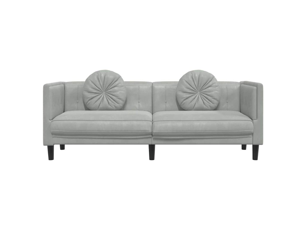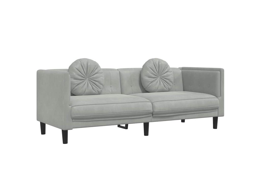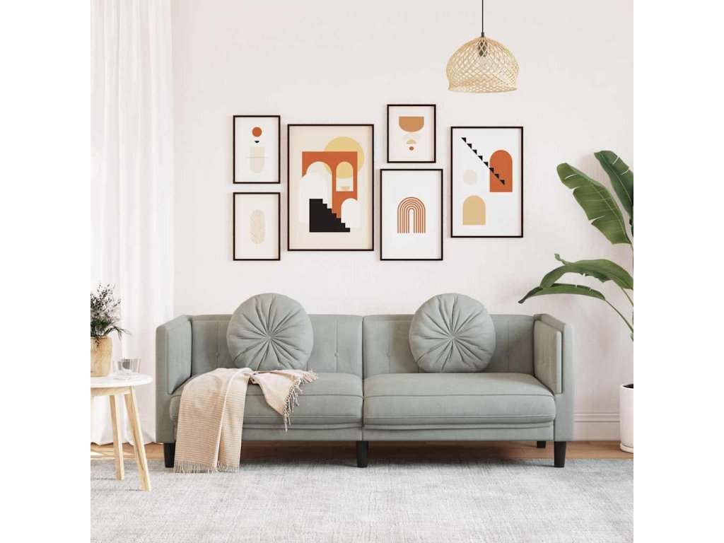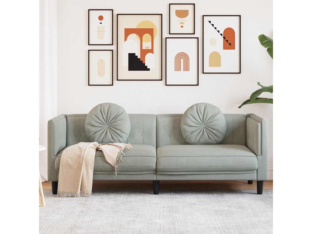 Pohovka s polštáři 3místná světle šedá samet 372642