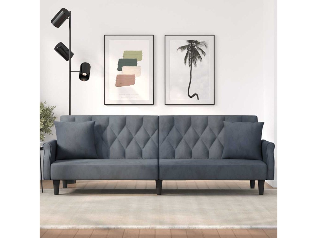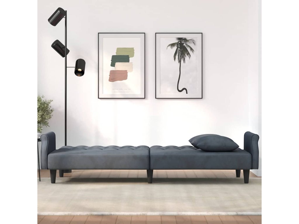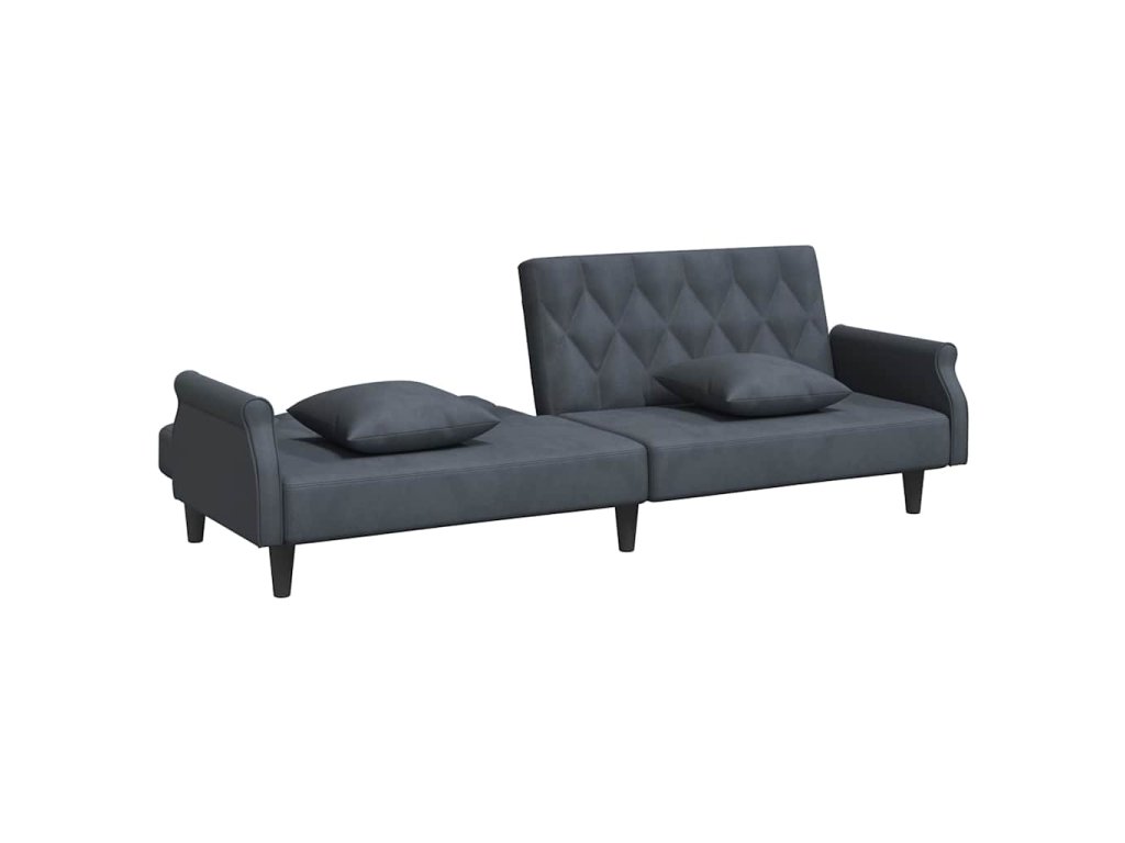 Rozkládací pohovka s područkami tmavě šedá samet 351945
