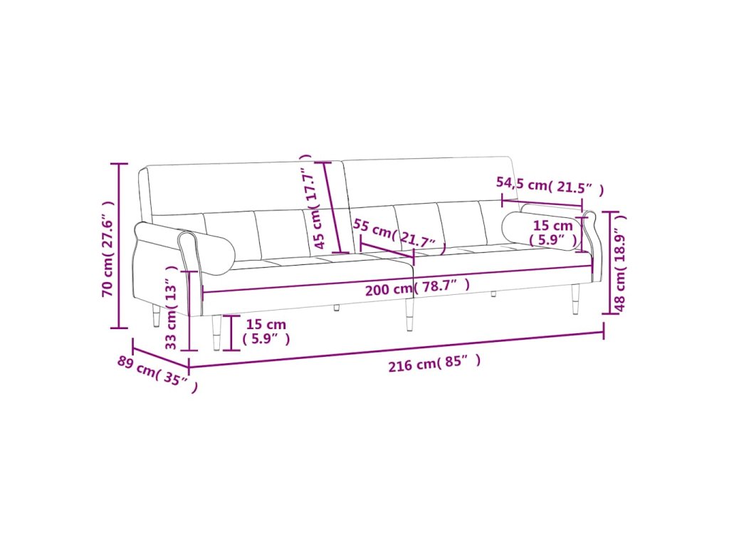 - Rozměry podušky (každá): 15 x 54,5 cm (průměr x H)