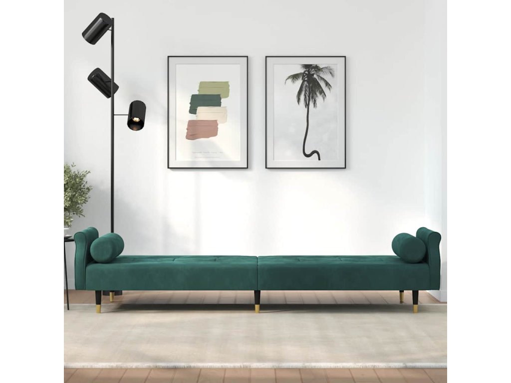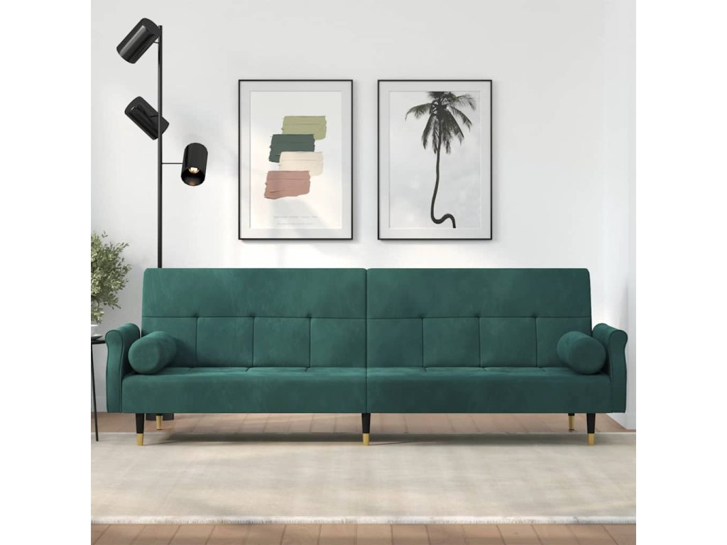 Rozkládací pohovka s poduškami tmavě zelená samet 351859
