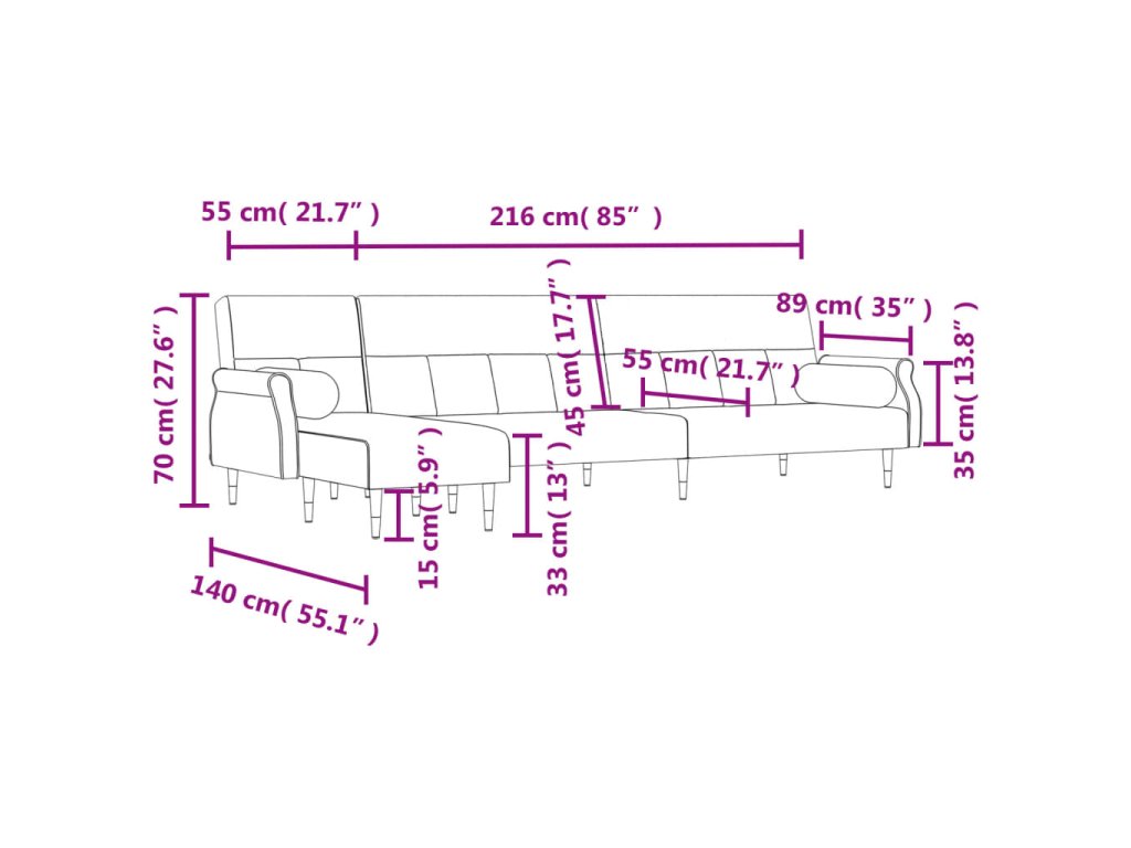 Rozkládací pohovka ve tvaru L světle šedá 271x140x70 cm samet 3157221