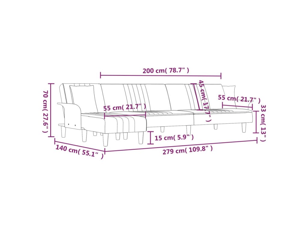 Rozkládací pohovka ve tvaru L světle šedá 279x140x70 cm textil 3157238
