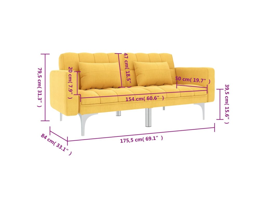 Rozkládací pohovka žlutá textil 247218