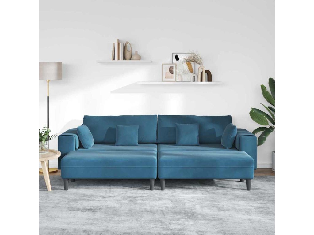 Sametová pohovka s polštářem 3 pcs Modrá 208 cm samet 3335171