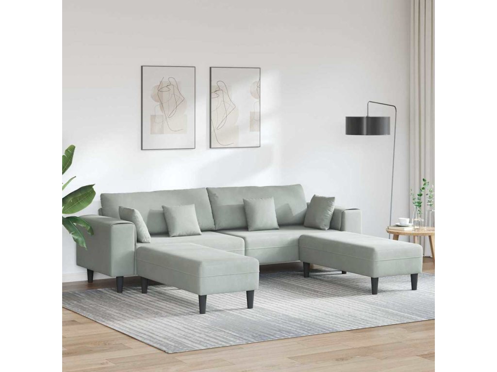 Sametová pohovka s polštářem 3 pcs Světle šedá 208 cm samet 3335172