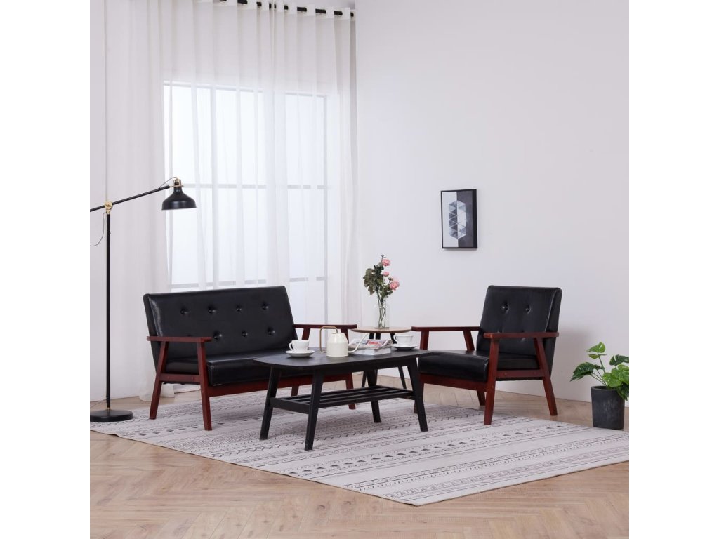 Sedací souprava 2 ks černá umělá kůže 278395