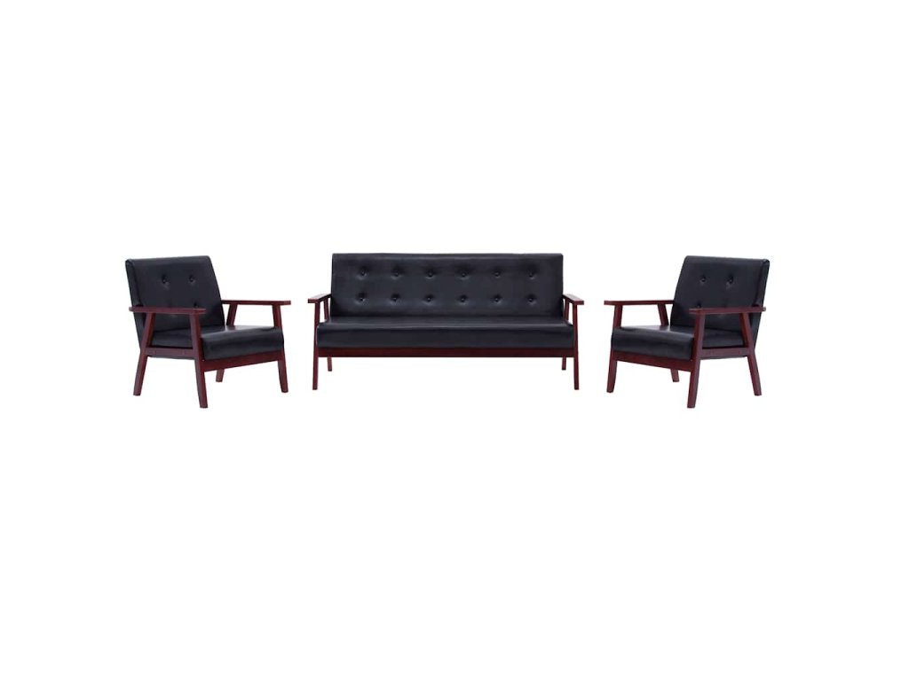 Čalounění soupravy je vyrobené z měkké umělé kůže, které je polstrované pohodlnou pěnou. Rám z dřevěného masivu pak zaručuje stabilitu a odolnost sedací soupravy.