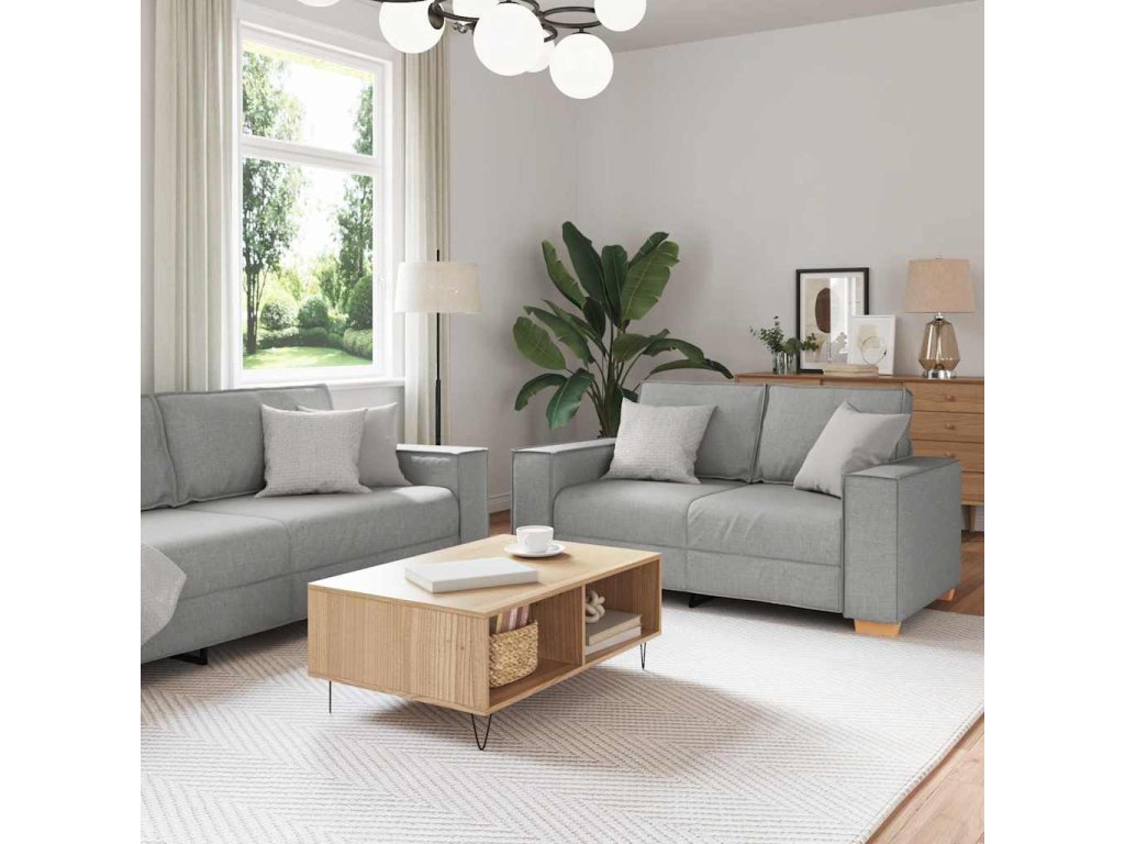 Moderní čalouněná souprava s polštáři přináší do tvého obýváku teplou a přívětivou atmosféru. Díky čistým liniím a minimalistickému designu spojuje styl s praktičností. Obsahuje velkou třímístnou pohovku, pohodlnou dvoumístnou pohovku a jedno křeslo, které se skvěle hodí jak do moderního, tak do tradičního interiéru a vytváří přátelskou atmosféru pro tebe i tvé hosty.