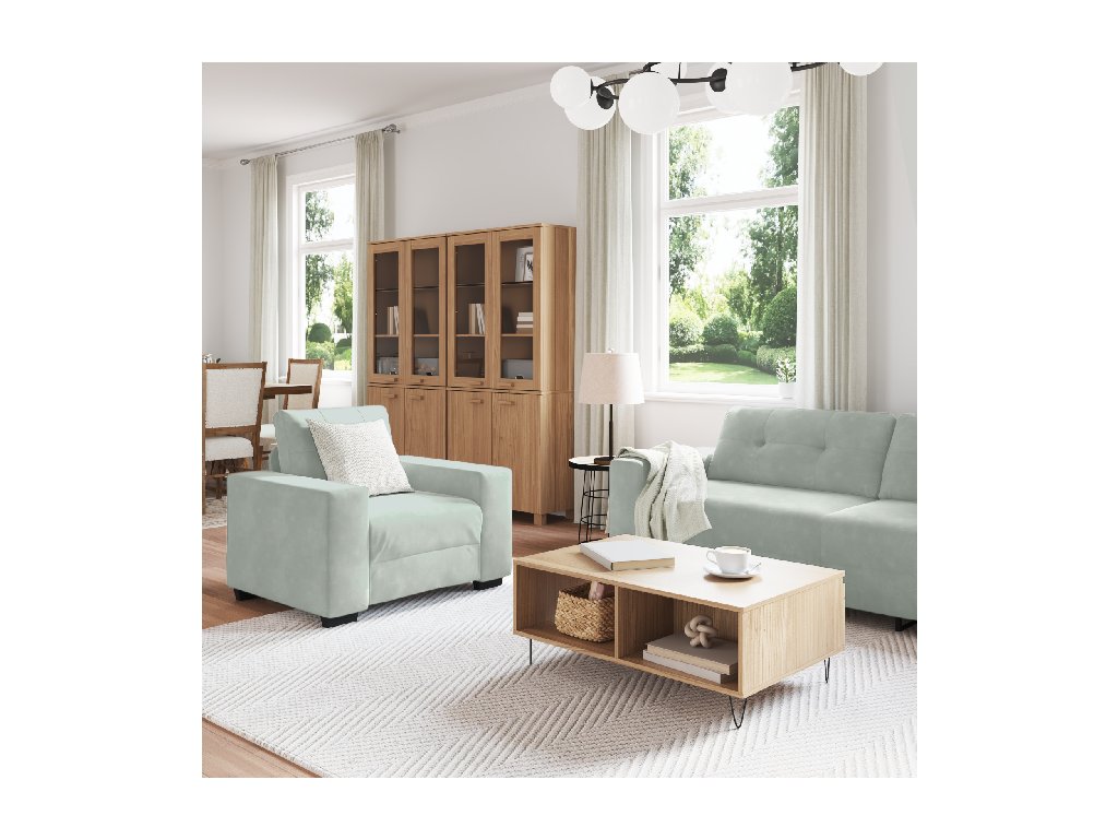 - Zahrnuté komponenty: Set obsahuje křeslo, dvoumístnou a třímístnou pohovku, všechny navržené pro pohodlí. Široké opěrky rukou pro extra podporu, každý kousek je přizpůsoben pro komfortní sezení. Čtvercové hrany dodávají strukturu a moderní nádech.