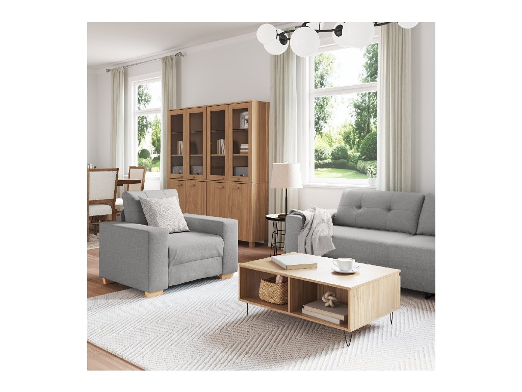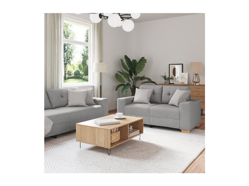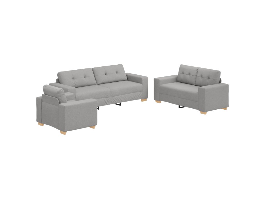 Tato moderní látková pohovková souprava je všechno o stylu a pohodlí, skvělá volba, pokud chceš přidat do svého obýváku kousek jednoduchosti. Přichází s měkkým matným povrchem a polyesterovou látkou, zahrnuje jedno křeslo, 2-místnou a 3-místnou pohovku. Polštáře ve tvaru boxu a široké opěrky rukou z ní dělají pohodlné místo pro rodinné sešlosti, čtení nebo filmové večery.