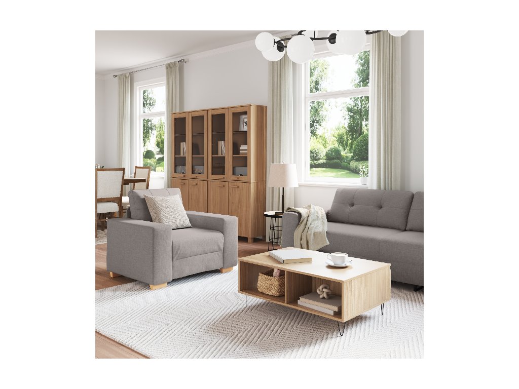 Tato moderní látková pohovková souprava je všechno o stylu a pohodlí, skvělá volba, pokud chceš přidat do svého obýváku kousek jednoduchosti. Přichází s měkkým matným povrchem a polyesterovou látkou, zahrnuje jedno křeslo, 2-místnou a 3-místnou pohovku. Polštáře ve tvaru boxu a široké opěrky rukou z ní dělají pohodlné místo pro rodinné sešlosti, čtení nebo filmové večery.
