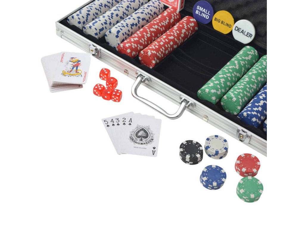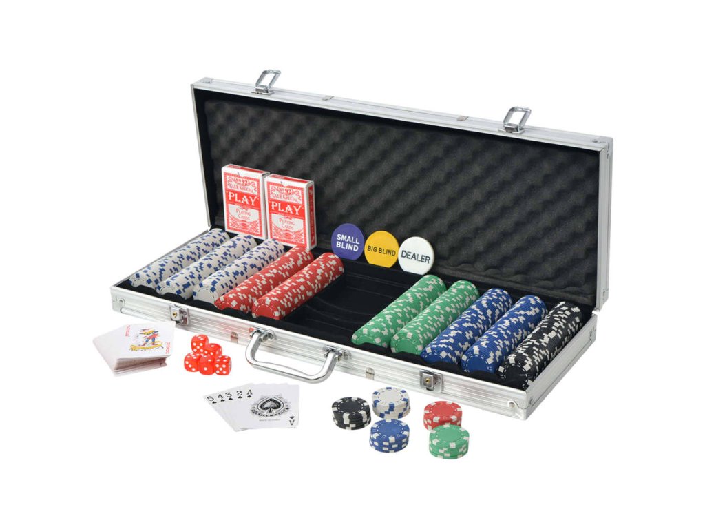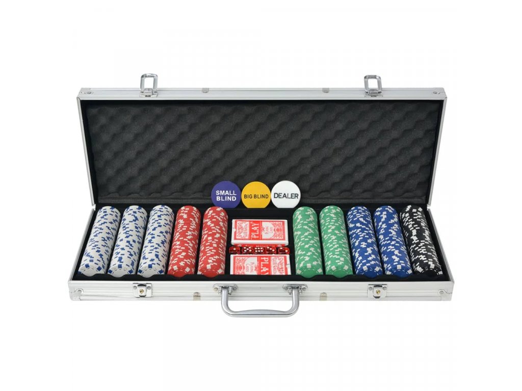 Tato sada obsahuje 5 kasinových kostek, 2 balíčky karet, 1 žeton small blind, 1 žeton big blind, 1 žeton Dealer a 500 žetonů. Tato sada je dodávána v hliníkovém pouzdře.