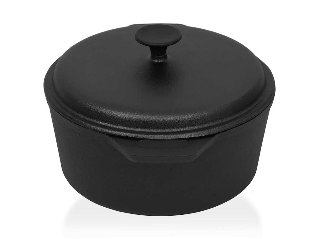 Tento pekáč s víkem je vyrobený z litiny a rovnoměrně rozvádí teplo. Hodí se téměř na všechny plynové a elektrické sporáky, jiné varné plochy nebo přímo do ohně nebo na gril. S tímto hrncem můžete péct i gratinovat. Rukojeť navíc chrání ruce, abyste se nespálili o horký povrch.