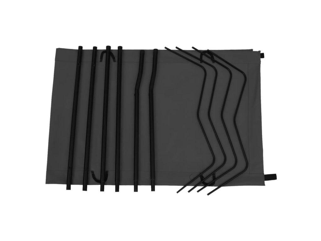 Polní lůžko je vyrobené z pevné oxfordské látky a oceli, je tudíž pohodlné, velmi stabilní a odolné. Jeho maximální nosnost je 120 kg.
