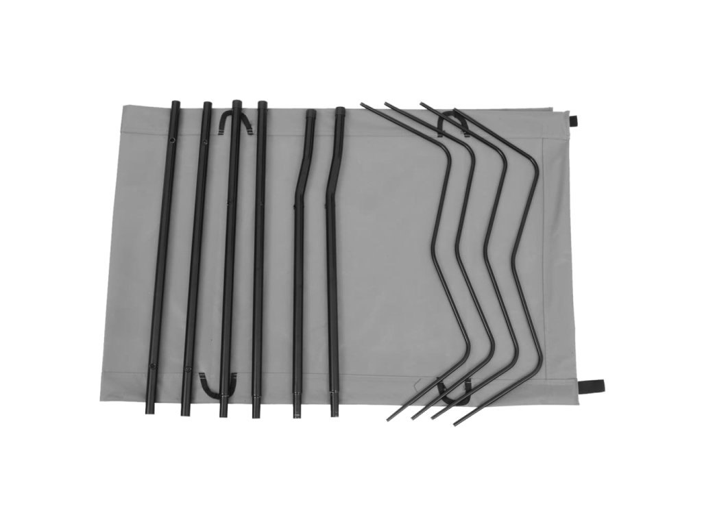 Polní lůžko je vyrobené z pevné oxfordské látky a oceli, je tudíž pohodlné, velmi stabilní a odolné. Jeho maximální nosnost je 120 kg.