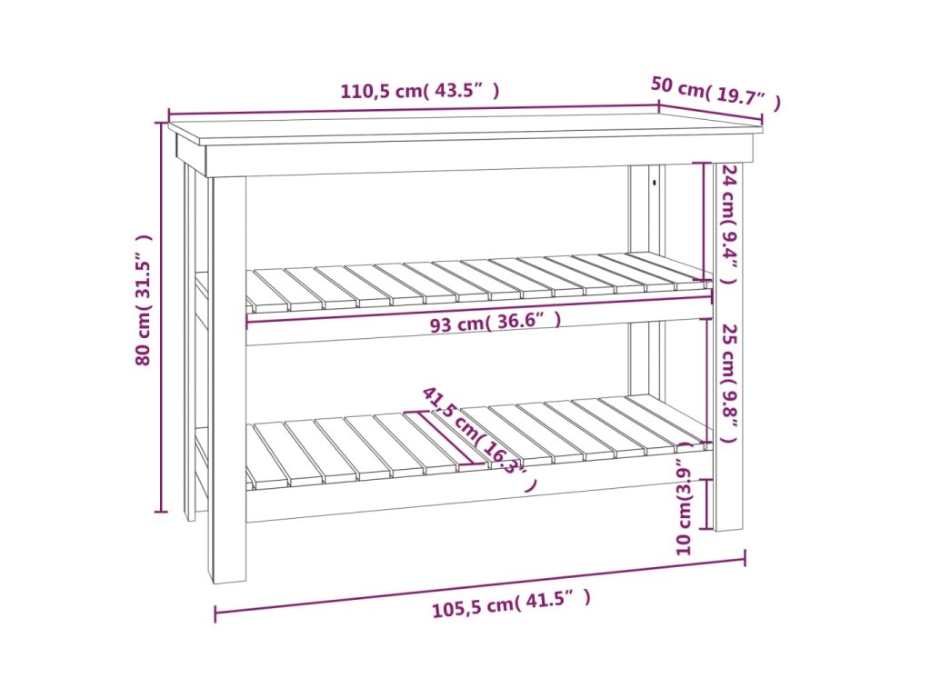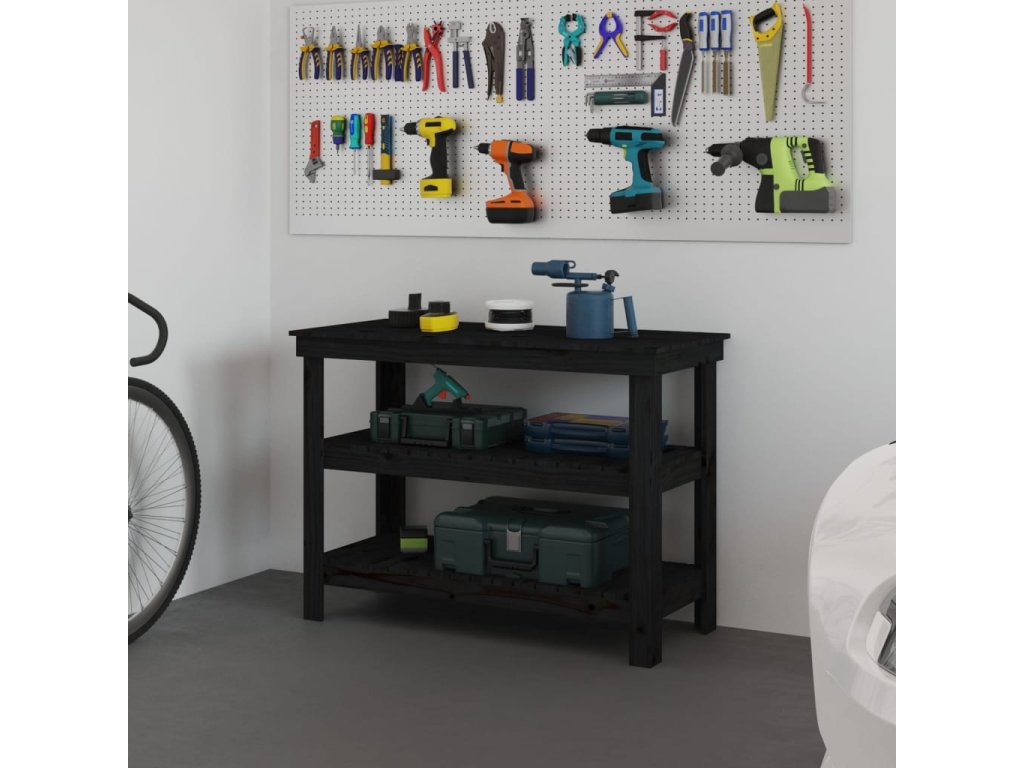 Dílenský stůl černý 110,5x50x80 cm masivní borové dřevo 823648