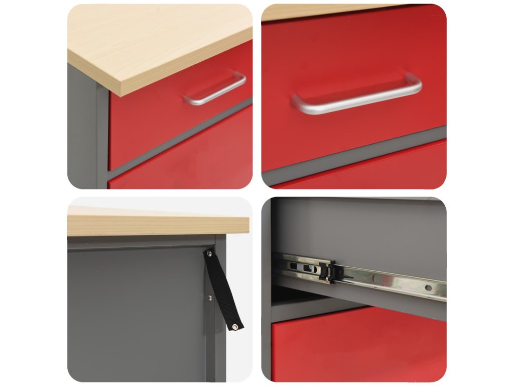 - Ocelový rám: Tento skříň s inženýrským dřevem a ocelí zaručuje pevnost a dlouhou životnost. Silný rám poskytuje solidní základ pro těžké nástroje a vybavení. I přes impozantní konstrukci se materiály pyšní štíhlým vzhledem, což potěší oko v každé dílně. Údržba je jednoduchá – stačí otřít vlhkým hadříkem, aby skříň vypadala jako nová.