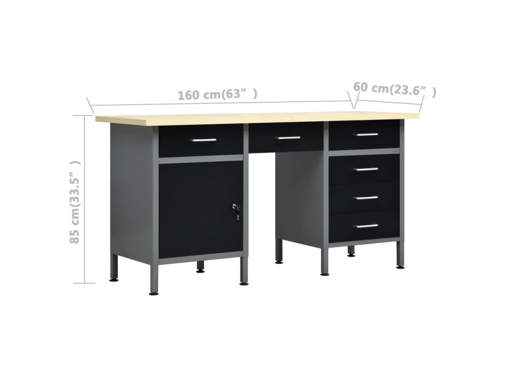 Velmi odolný pracovní stůl s velkým úložným prostorem má nosnost 500 kg. Jeho prostorná a odolná stolní deska představuje stabilní plochu pro všechny vaše pracovní činnosti. Tento pracovní stůl má 6 zásuvek, kam si můžete dobře uspořádat své nářadí, díly a příslušenství, jako jsou šrouby, hřebíky a lepicí pásky. Všechny zásuvky jsou vybavené kuličkovými pojezdy pro snadné vysouvání a zasouvání. Za uzamykatelnými dvířky jsou 2 police pro snadné ukládání různých nástrojů, jako jsou vrtačky, bubny s kabely a brusky. Výškově nastavitelné nohy vám umožňují přizpůsobit si výšku stolu. Celý ponk je vyrobený z prvotřídní oceli a kompozitního dřeva, a proto je mimořádně robustní, má dlouhou životnost a snadno se čistí. Jeho sestavení je snadné.