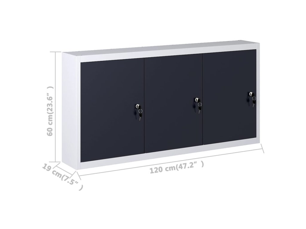 Nástěnné úložné řešení na nářadí je vybavené třemi výškově nastavitelnými policemi a děrovanou deskou s otvory, které lze použít k zavěšení různých druhů nástrojů, jako jsou klíče, kleště, kladiva apod. Tři nástěnné skříňky mají pro větší bezpečnost uzamykatelná dvířka (2 klíče pro každé dveře). Úložná stěna je vyrobená z kovu s extra silnou vrstvou proti poškrábání, takže má dlouhou životnost a snadno se čistí. Tento produkt je třeba sestavit.