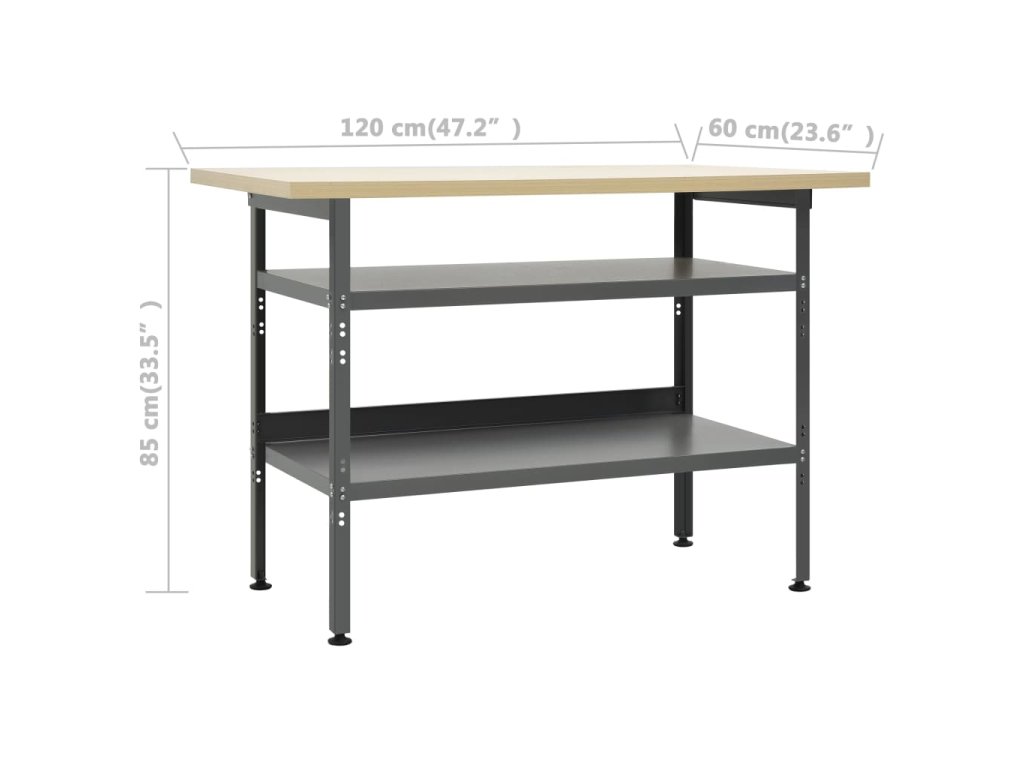 Tento velmi odolný pracovní stůl vyniká svým velkým úložným prostorem a nosností 300 kg. Má 2 velké police, do kterých si snadno uložíte vaše vrtačky, bubny s kabely, brusky a další nástroje. Výšku noh můžete nastavit dle vašich potřeb. Tento pracovní stůl je vyrobený z prvotřídní oceli a kompozitního dřeva, takže je mimořádně robustní, má dlouhou životnost a snadno se čistí. Jeho sestavení je snadné.