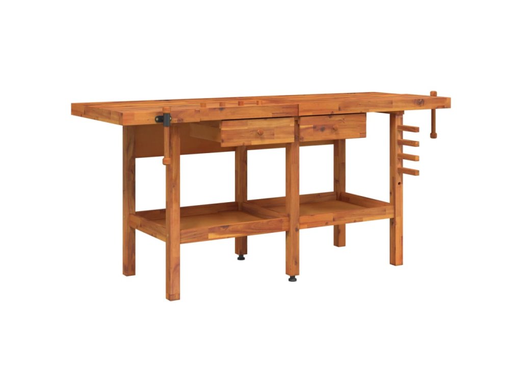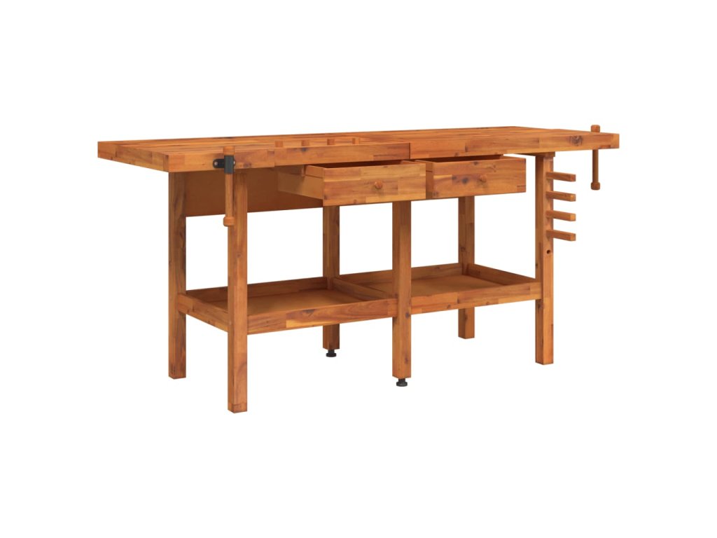 Pracovní stůl se zásuvkami a svěráky 192x62x83cm masivní akácie 153325