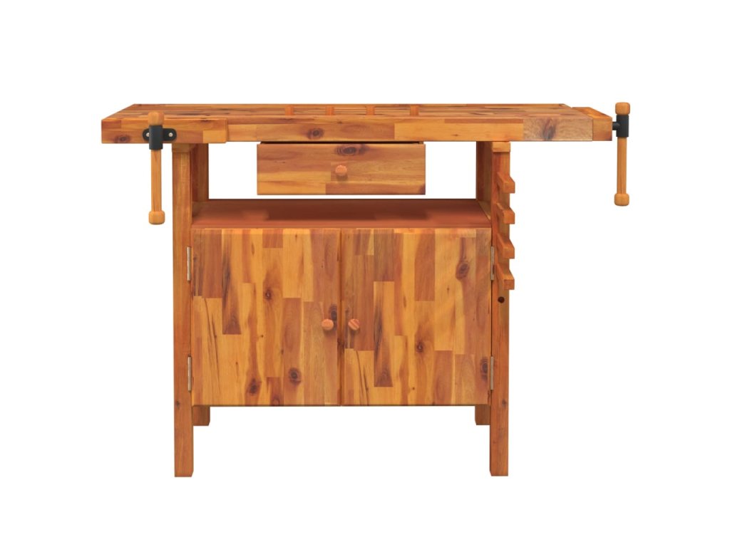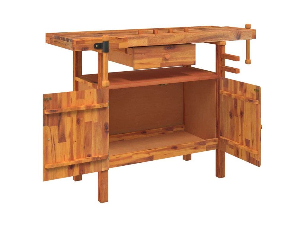 Pracovní stůl se zásuvkou a svěráky 124 x 52 x 83 cm masivní akácie 153321
