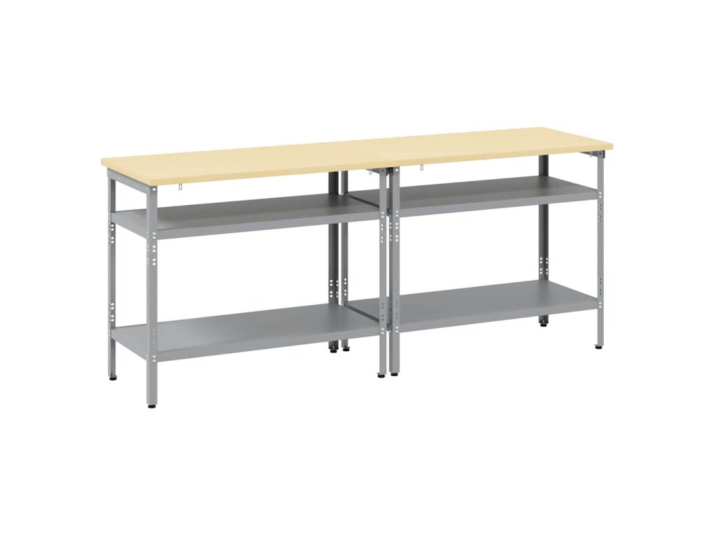 Tato sada pracovních stolů z oceli je ideální kombinací funkčnosti a průmyslového stylu pro profesionální dílny i domácí garáže. Obdélníkový stůl zvládne i těžší úkoly a má moderní design. Díky hladkému povrchu se bezproblémově hodí do jakéhokoliv prostoru. Kovové police poskytují dost úložného místa, takže máte nářadí a potřeby pěkně srovnané a přehledné. Představte si tento stůl jako středobod vašeho pracovního místa, který dodává atmosféru profesionality, pořádku a stylu.