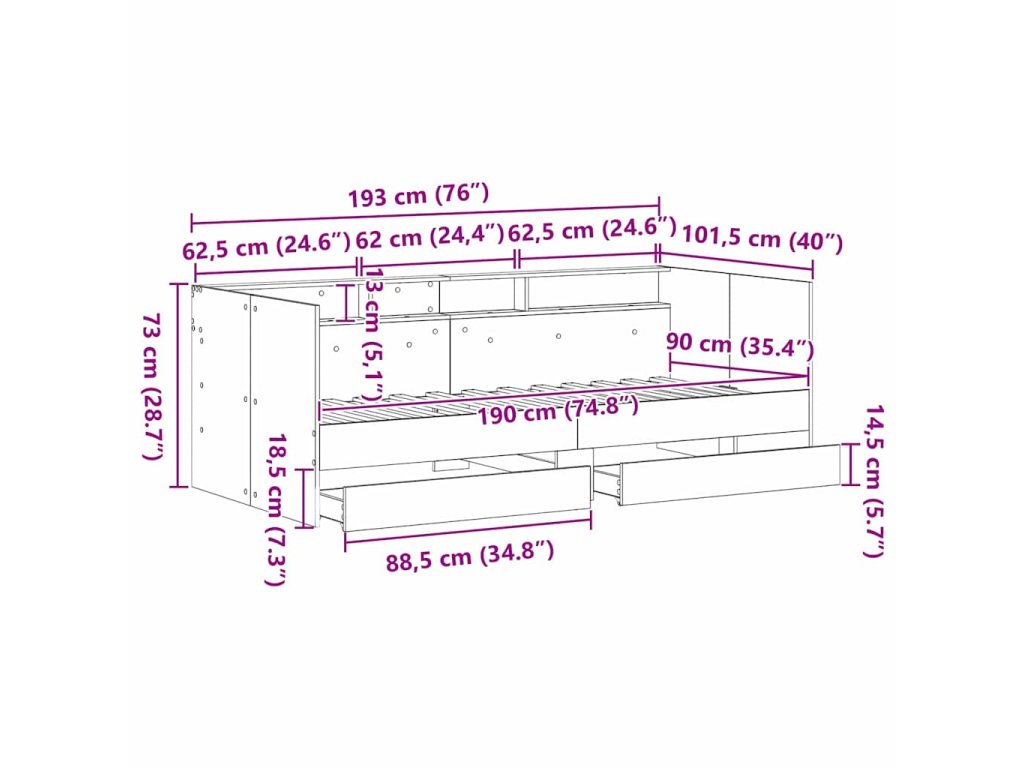 Toto rustikální denní lůžko z inženýrského dřeva má zásuvky a skvěle zapadá do moderních prostor. Jeho jednoduché linie a minimální design jsou ideální pro každou ložnici, co preferuje jednoduchost. Může se používat jako pohovka během dne a jako pohodlná postel v noci - perfektní pro malé byty. Jeho nenáročný styl a pevná konstrukce umožňují mnoho možností dekorace, takže si ho můžete přizpůsobit podle sebe.